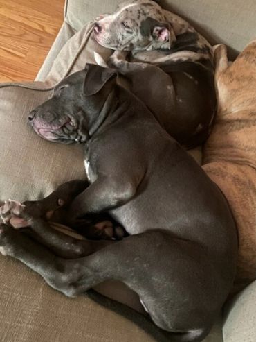 The A.CK.TP.MJB.QJ. CREW is OUR family, they are raised in the home, they sleep in our beds, and on the couch, the ottoman, and sometimes, on their 100 doggy beds we have scattered throughout our home.