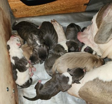 Born 2/21/2021- The BULLDOZER Bunch! These puppies went to forever homes in Connecticut, Massachusetts, New Hampshire, Rhode Island, and Wyoming.